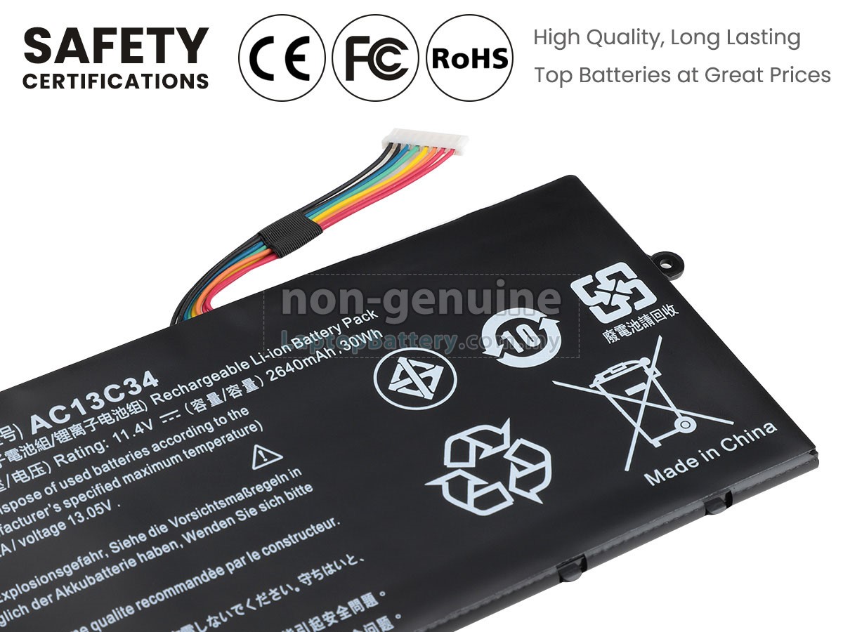 All our high-grade replacement batteries for Acer Aspire E3-112M laptop have been tested to prove that they can match or surpass original Acer battery performance and fit with Original Manufacturer's Specifications. In compliance with international standards, they obtain a series of rigorous safety certifications such as CE, UL, ROHS, ISO9001/9002. In general, this replacement Acer Aspire E3-112M battery can be charged/discharged up to more than 600 cycles.