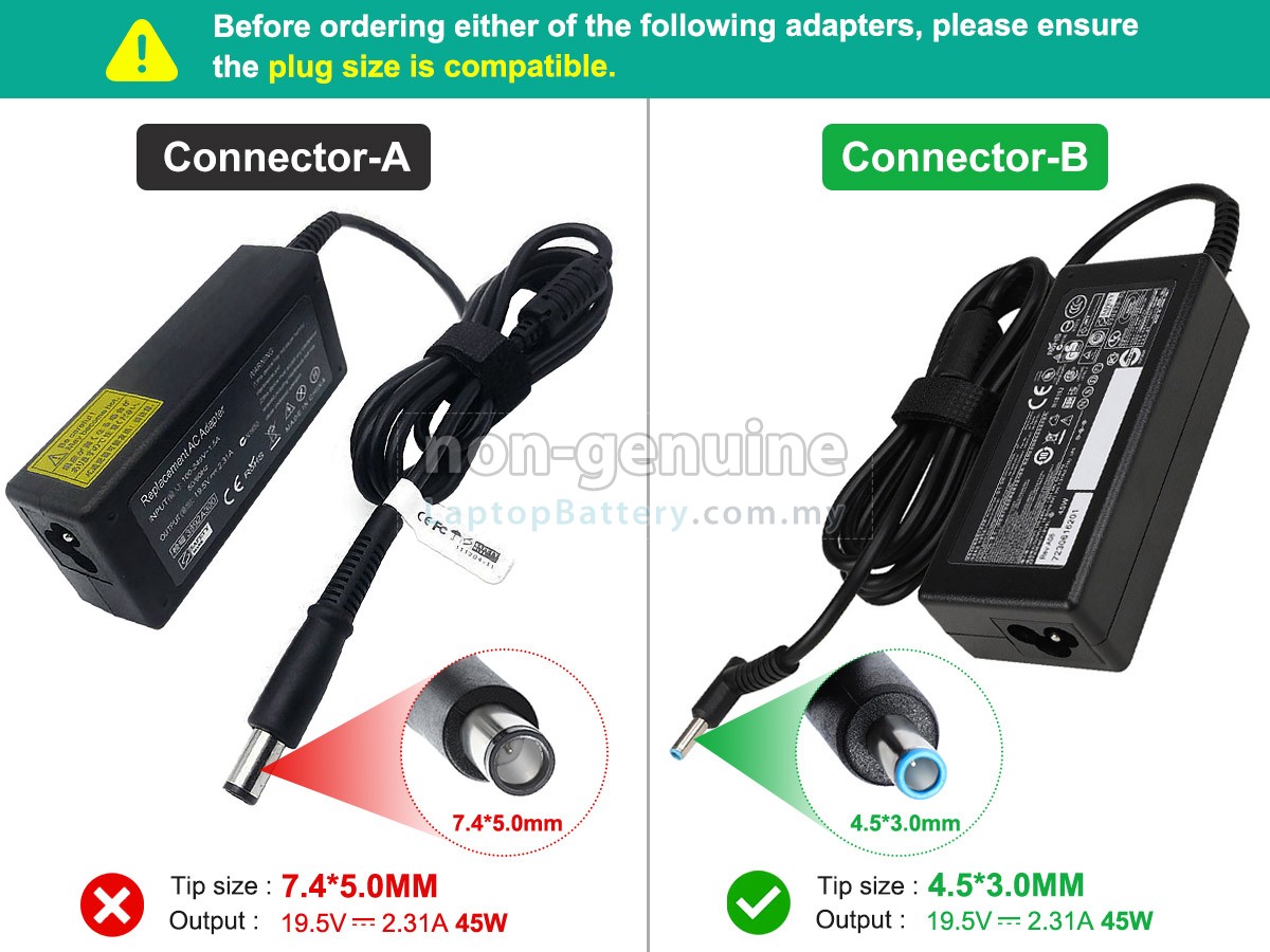 2 Ensure that the interface type and size of your device match the adapter for HP HSTNN-CA40.