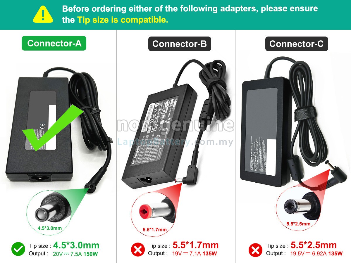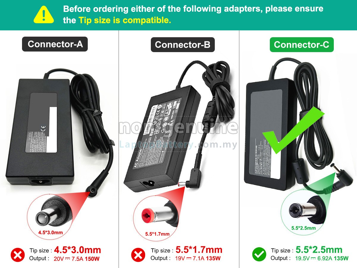 2 Ensure that the interface type and size of your device match the adapter for MSI A18-135P1A.