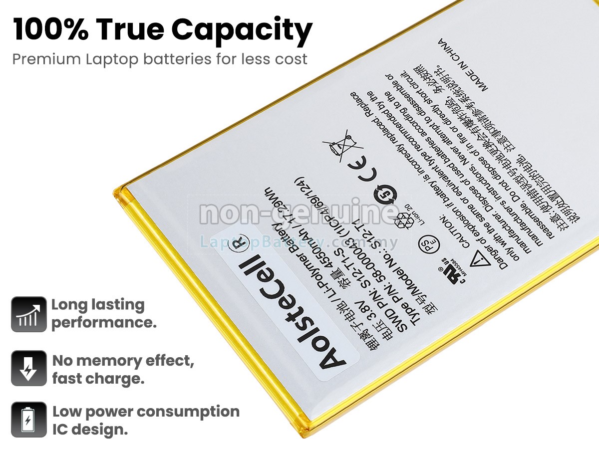 Our Website is your source of high-grade Amazon laptop batteries! This brand new 17.29Wh(1 cells) replacement Amazon S12-T1 Li-Polymer battery is made with high-grade cells from Samsung, LG and Panasonic to ensure maximum performance. The housing of the Amazon S12-T1 battery pack is made of non flammable and very durable plastic, which is fire-retarded and nonperishable when dropped from low heights.