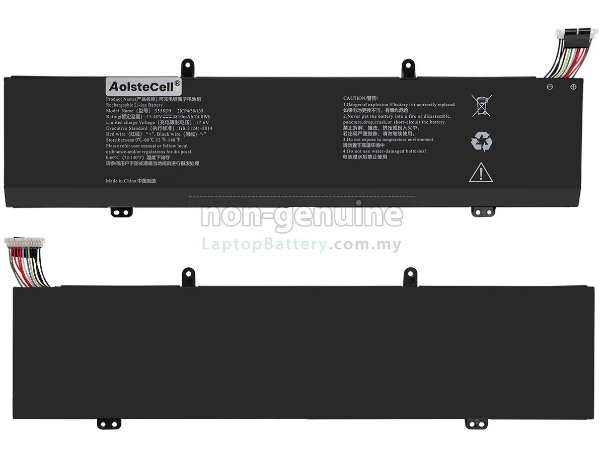 Our Website is your source of high-grade AolsteCell laptop batteries! This brand new 74Wh(2 cells) replacement AolsteCell 3558D9 Li-Polymer battery is made with high-grade cells from Samsung, LG and Panasonic to ensure maximum performance. The housing of the AolsteCell 3558D9 battery pack is made of non flammable and very durable plastic, which is fire-retarded and nonperishable when dropped from low heights.