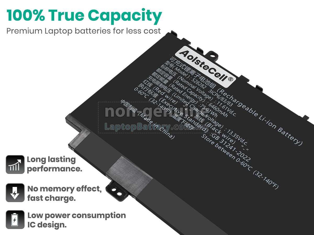 Our Website is your source of high-grade AolsteCell laptop batteries! This brand new 75.01Wh(3 cells) replacement AolsteCell 528282 Li-Polymer battery is made with high-grade cells from Samsung, LG and Panasonic to ensure maximum performance. The housing of the AolsteCell 528282 battery pack is made of non flammable and very durable plastic, which is fire-retarded and nonperishable when dropped from low heights.