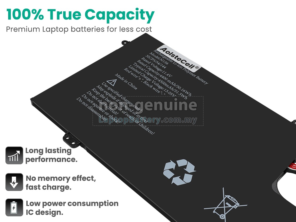 Our Website is your source of high-grade AolsteCell laptop batteries! This brand new 50.16Wh(3 cells) replacement AolsteCell N156 Li-Polymer battery is made with high-grade cells from Samsung, LG and Panasonic to ensure maximum performance. The housing of the AolsteCell N156 battery pack is made of non flammable and very durable plastic, which is fire-retarded and nonperishable when dropped from low heights.