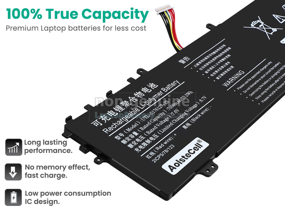 Our Website is your source of high-grade AolsteCell laptop batteries! This brand new 53.2Wh(2 cells) replacement AolsteCell UTL-5176127-2S Li-ion battery is made with high-grade cells from Samsung, LG and Panasonic to ensure maximum performance. The housing of the AolsteCell UTL-5176127-2S battery pack is made of non flammable and very durable plastic, which is fire-retarded and nonperishable when dropped from low heights.