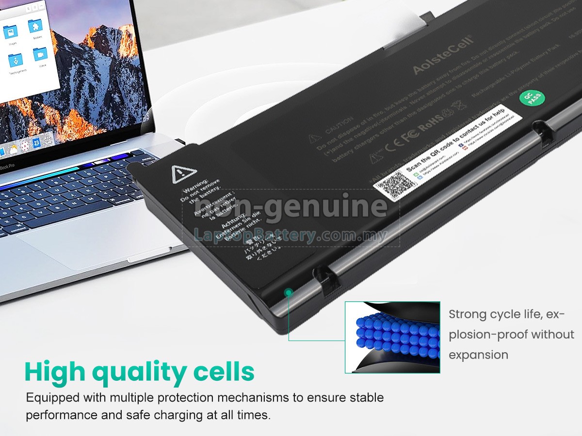 Our Website is your source of high-grade Apple laptop batteries! This brand new 73Wh(9 cells) replacement Apple A1286 EMC 2325 Li-Polymer battery is made with high-grade cells from Samsung, LG and Panasonic to ensure maximum performance. The housing of the Apple A1286 EMC 2325 battery pack is made of non flammable and very durable plastic, which is fire-retarded and nonperishable when dropped from low heights.