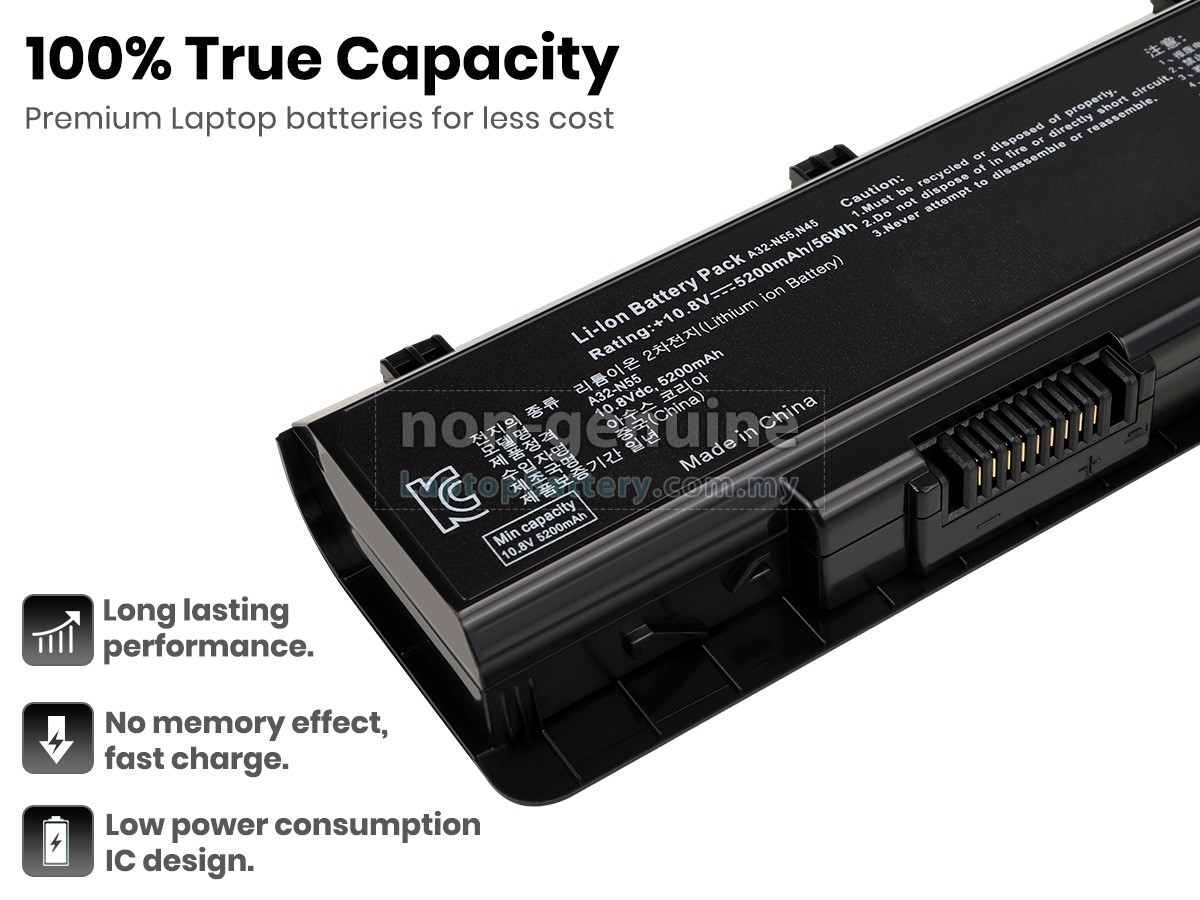 Our Website is your source of high-grade Asus laptop batteries! This brand new 4400mAh(6 cells) replacement Asus 07G016HY1875 Li-ion battery is made with high-grade cells from Samsung, LG and Panasonic to ensure maximum performance. The housing of the Asus 07G016HY1875 battery pack is made of non flammable and very durable plastic, which is fire-retarded and nonperishable when dropped from low heights.