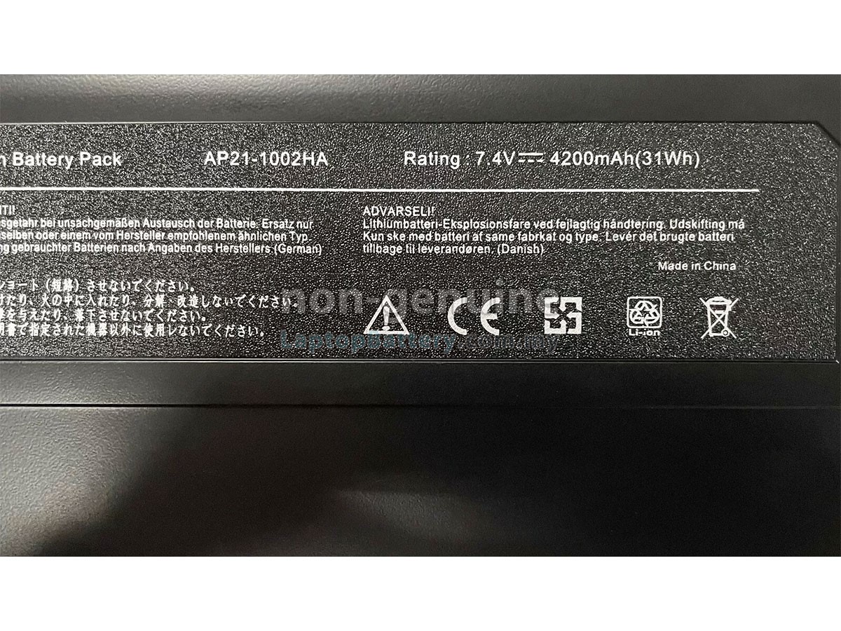 Our Website is your source of high-grade Asus laptop batteries! This brand new 31Wh(4 cells) replacement Asus AP21-1002HA Li-ion battery is made with high-grade cells from Samsung, LG and Panasonic to ensure maximum performance. The housing of the Asus AP21-1002HA battery pack is made of non flammable and very durable plastic, which is fire-retarded and nonperishable when dropped from low heights.