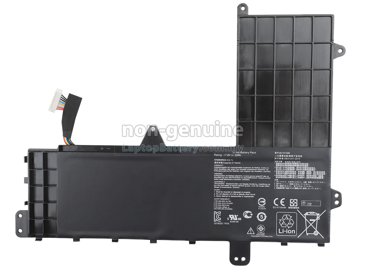 Our Website is your source of high-grade Asus laptop batteries! This brand new 32Wh(2 cells) replacement Asus B21N1506 Li-Polymer battery is made with high-grade cells from Samsung, LG and Panasonic to ensure maximum performance. The housing of the Asus B21N1506 battery pack is made of non flammable and very durable plastic, which is fire-retarded and nonperishable when dropped from low heights.