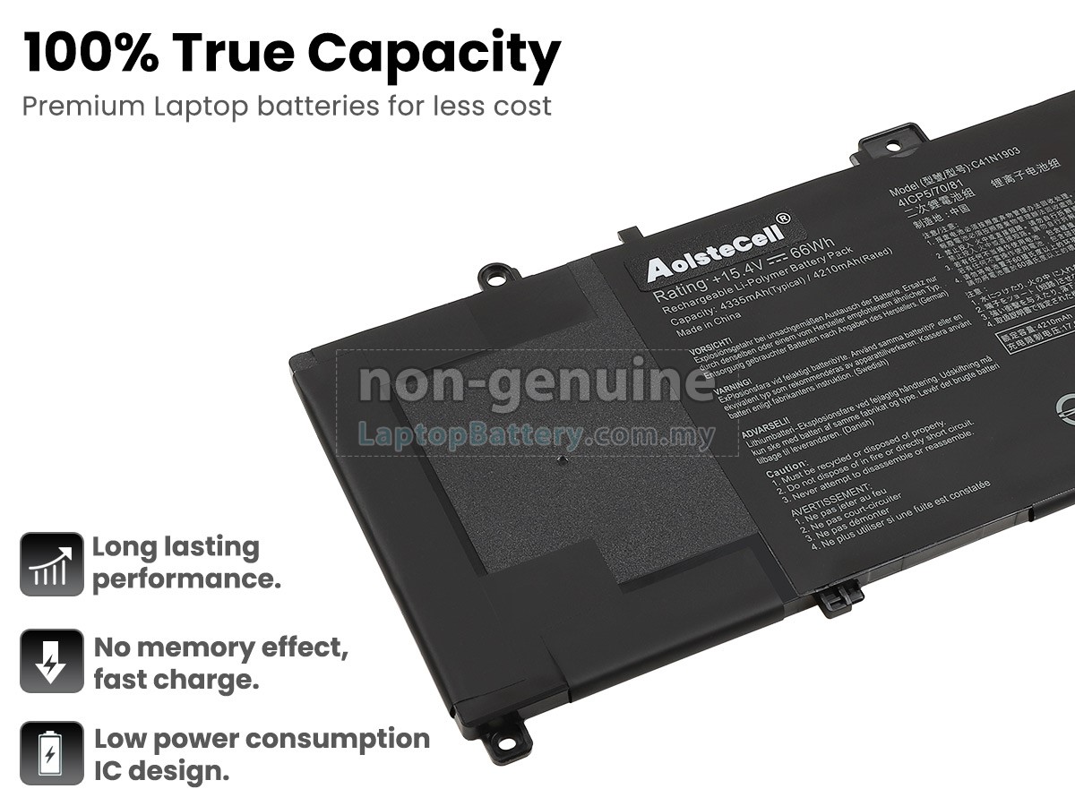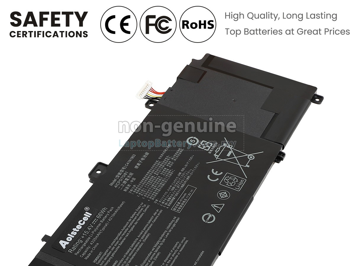 Our Website is your source of high-grade Asus laptop batteries! This brand new 66Wh(4 cells) replacement Asus B3302FEA Li-Polymer battery is made with high-grade cells from Samsung, LG and Panasonic to ensure maximum performance. The housing of the Asus B3302FEA battery pack is made of non flammable and very durable plastic, which is fire-retarded and nonperishable when dropped from low heights.