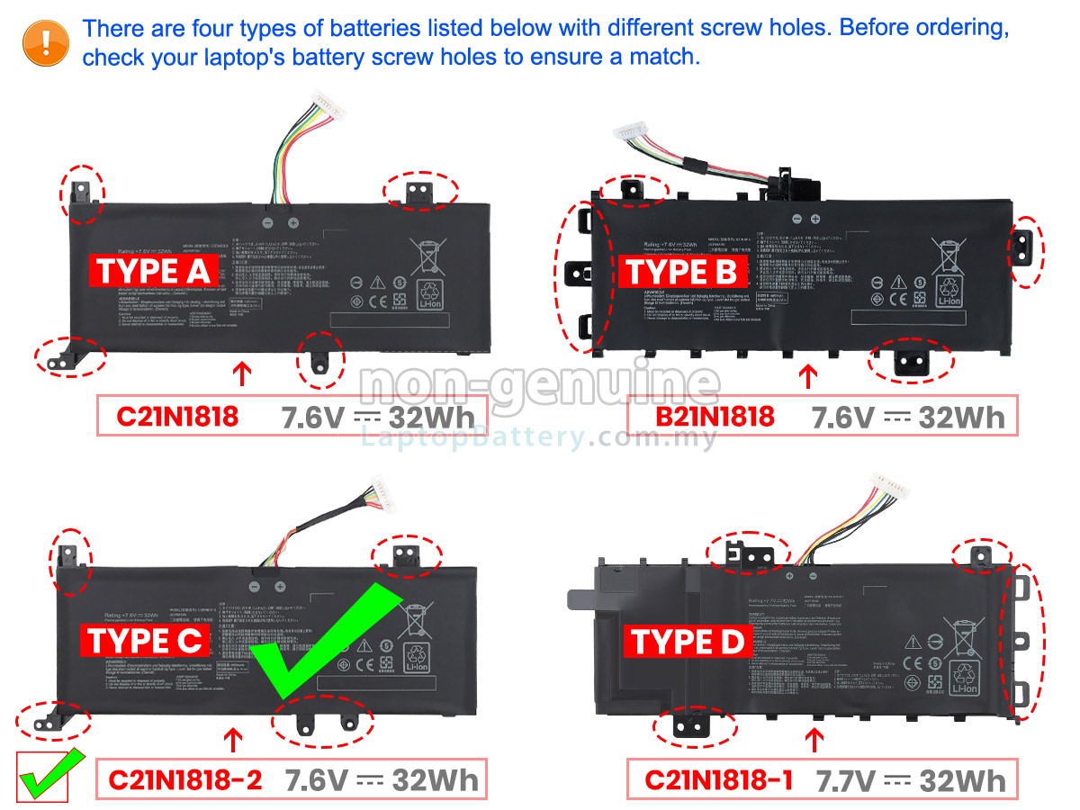 There are 2 types battery, before placing an order please ensure your old battery model name is [C21N1818], not [C21N1818-1] or [C21N1818-2]. - SKUMYL6760