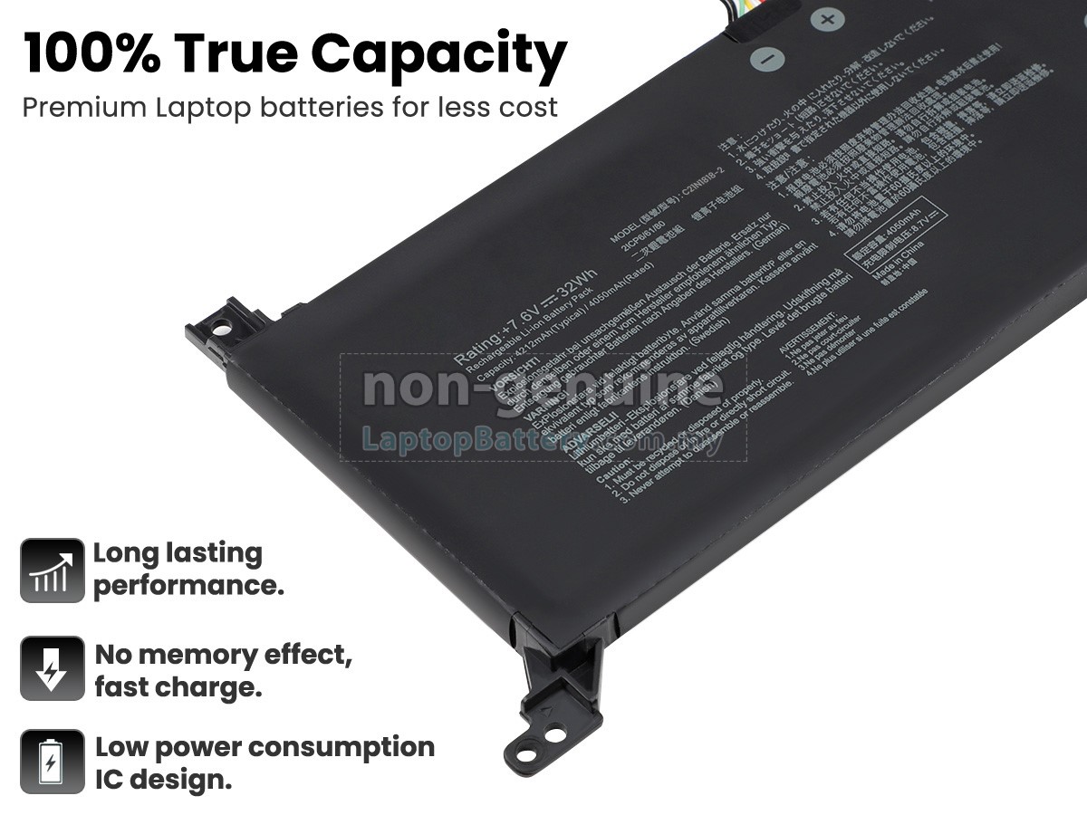 All our high quality replacement batteries for Asus C21N1818-1 laptop come with a 1-year warranty. Warranty is applicable if the buyer has installed the battery properly in the device and has treated the battery correctly.