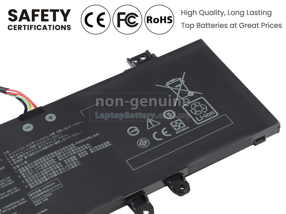 All our high-grade replacement batteries for Asus C21N1818-1 laptop have been tested to prove that they can match or surpass original Asus battery performance and fit with Original Manufacturer's Specifications. In compliance with international standards, they obtain a series of rigorous safety certifications such as CE, UL, ROHS, ISO9001/9002. In general, this replacement Asus C21N1818-1 battery can be charged/discharged up to more than 600 cycles.