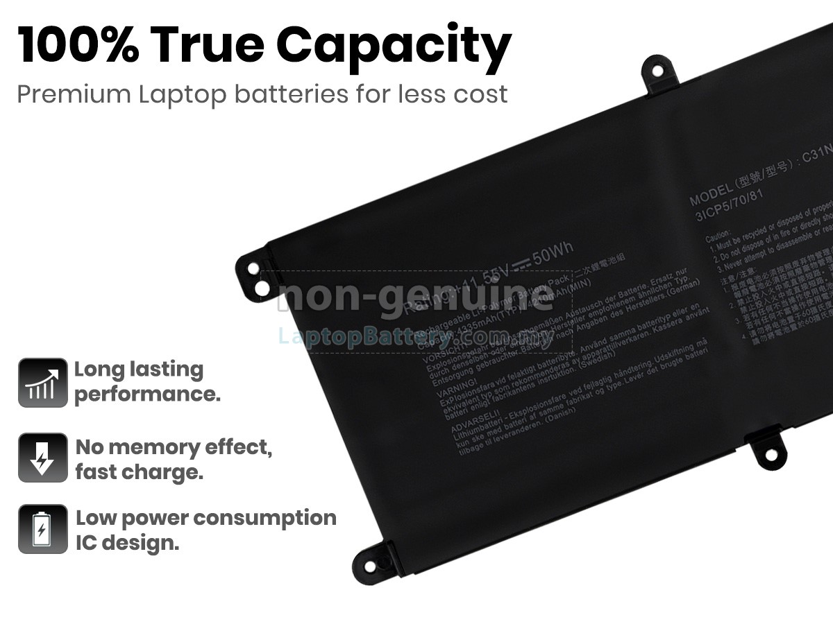 All our high quality replacement batteries for Asus C31N1622 laptop come with a 1-year warranty. Warranty is applicable if the buyer has installed the battery properly in the device and has treated the battery correctly.