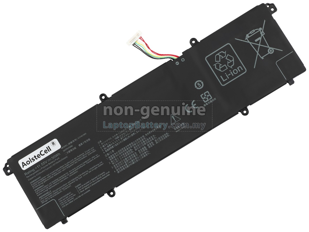 Our Website is your source of high-grade Asus laptop batteries! This brand new 50Wh(3 cells) replacement Asus C31N1905 Li-Polymer battery is made with high-grade cells from Samsung, LG and Panasonic to ensure maximum performance. The housing of the Asus C31N1905 battery pack is made of non flammable and very durable plastic, which is fire-retarded and nonperishable when dropped from low heights.