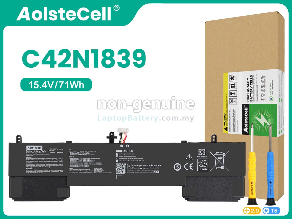 Our Website is your source of high-grade Asus laptop batteries! This brand new 71Wh(4 cells) replacement Asus C42N1839 Li-Polymer battery is made with high-grade cells from Samsung, LG and Panasonic to ensure maximum performance. The housing of the Asus C42N1839 battery pack is made of non flammable and very durable plastic, which is fire-retarded and nonperishable when dropped from low heights.