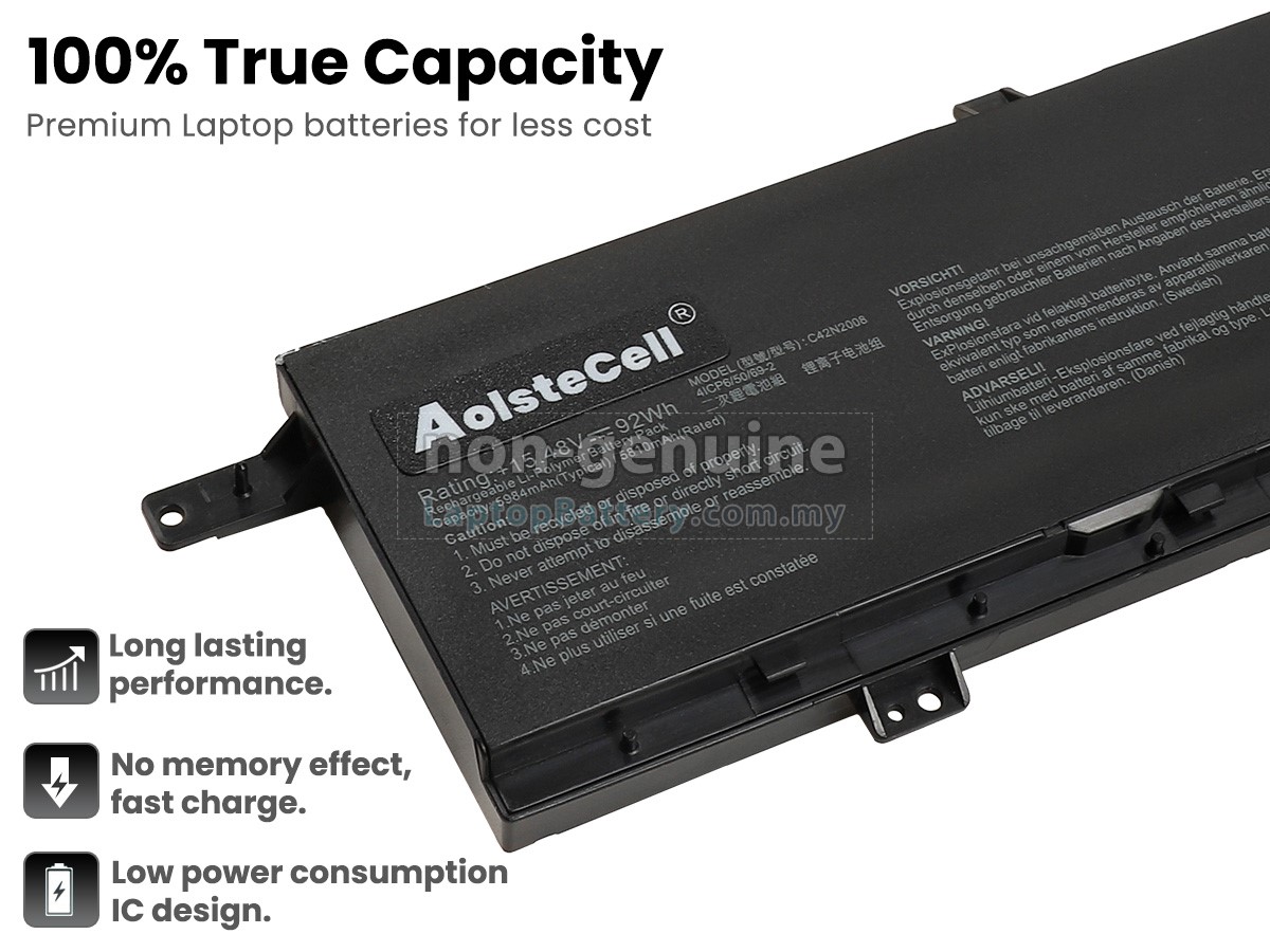 Our Website is your source of high-grade Asus laptop batteries! This brand new 92Wh(8 cells) replacement Asus C42N2008 Li-Polymer battery is made with high-grade cells from Samsung, LG and Panasonic to ensure maximum performance. The housing of the Asus C42N2008 battery pack is made of non flammable and very durable plastic, which is fire-retarded and nonperishable when dropped from low heights.