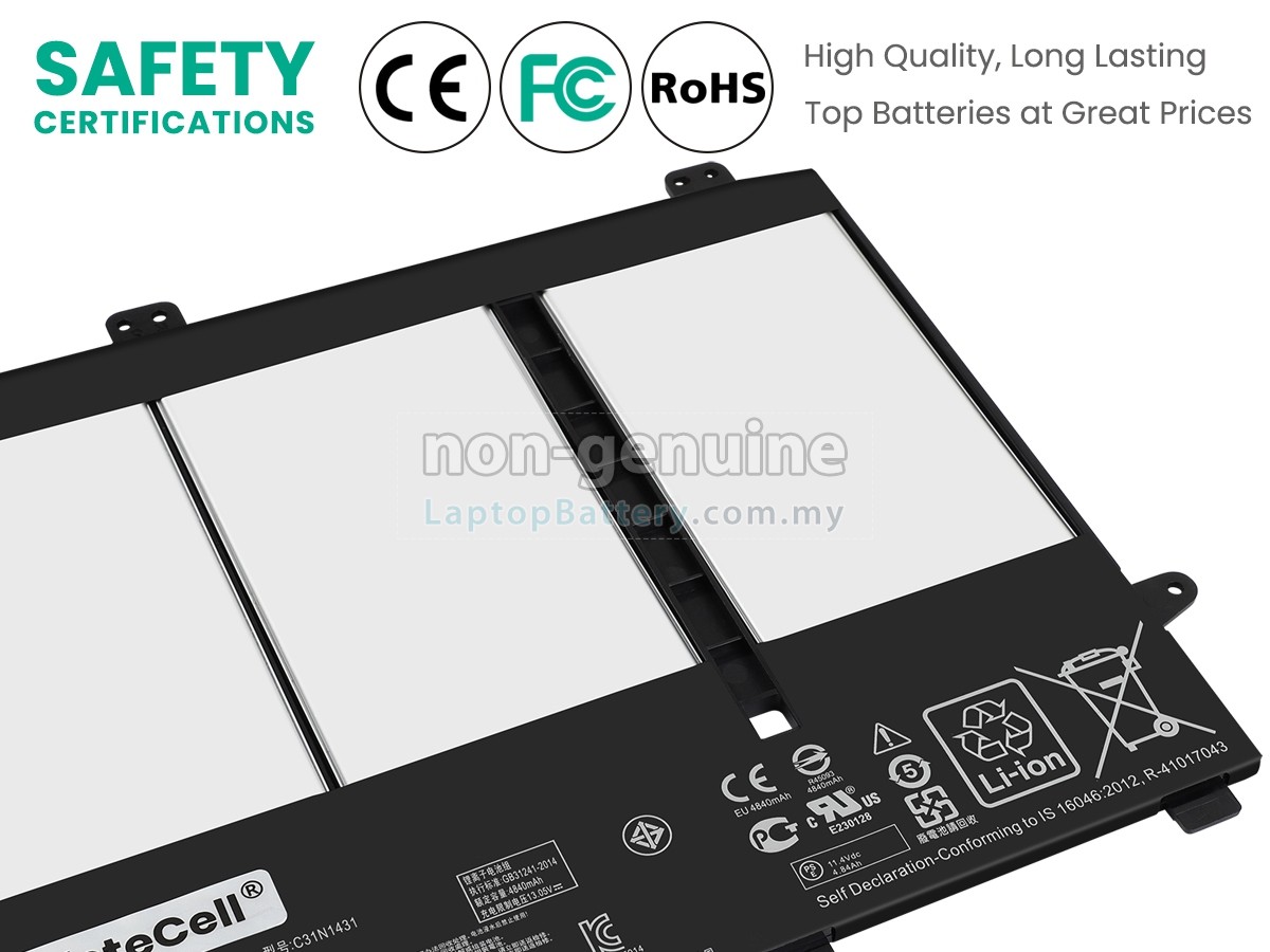 All our high-grade replacement batteries for Asus EeeBook E403SA laptop have been tested to prove that they can match or surpass original Asus battery performance and fit with Original Manufacturer's Specifications. In compliance with international standards, they obtain a series of rigorous safety certifications such as CE, UL, ROHS, ISO9001/9002. In general, this replacement Asus EeeBook E403SA battery can be charged/discharged up to more than 600 cycles.