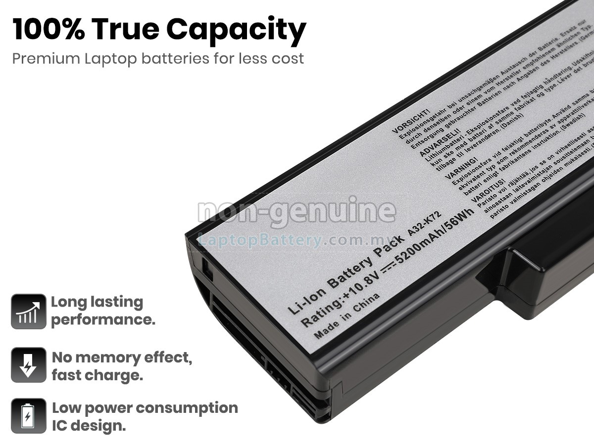 Our Website is your source of high-grade Asus laptop batteries! This brand new 4400mAh(6 cells) replacement Asus K73SV-TY201V Li-ion battery is made with high-grade cells from Samsung, LG and Panasonic to ensure maximum performance. The housing of the Asus K73SV-TY201V battery pack is made of non flammable and very durable plastic, which is fire-retarded and nonperishable when dropped from low heights.