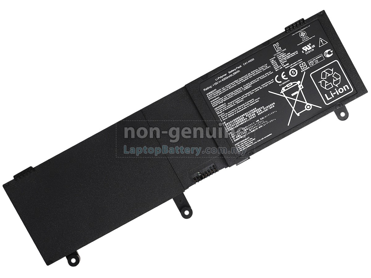 Our Website is your source of high-grade Asus laptop batteries! This brand new 59Wh(4 cells) replacement Asus N550X47JS Li-Polymer battery is made with high-grade cells from Samsung, LG and Panasonic to ensure maximum performance. The housing of the Asus N550X47JS battery pack is made of non flammable and very durable plastic, which is fire-retarded and nonperishable when dropped from low heights.