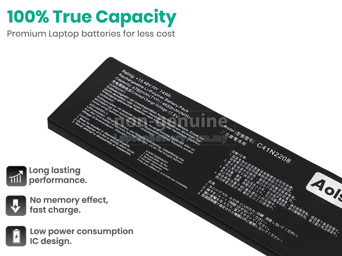 Our C41N2208 battery has a larger capacity and thickness of 74wh, so you will need to manually cut part of the housing of the device to complete the battery installation. - SKUMYL8825