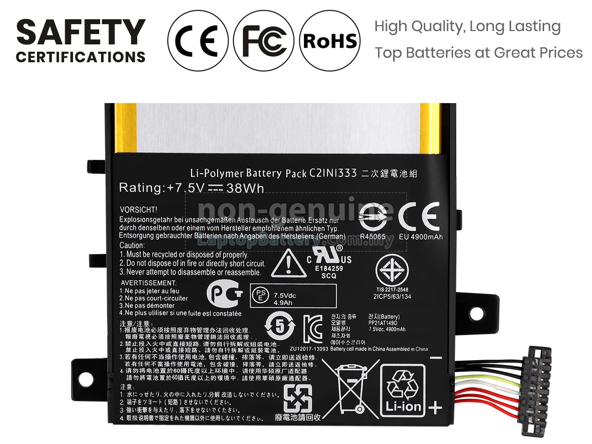 Our Website is your source of high-grade Asus laptop batteries! This brand new 38Wh(2 cells) replacement Asus Transformer Flip TP550LD Li-Polymer battery is made with high-grade cells from Samsung, LG and Panasonic to ensure maximum performance. The housing of the Asus Transformer Flip TP550LD battery pack is made of non flammable and very durable plastic, which is fire-retarded and nonperishable when dropped from low heights.