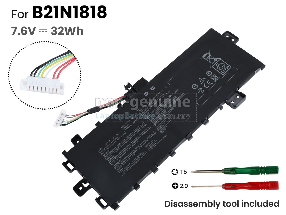 Our Website is your source of high-grade Asus laptop batteries! This brand new 32Wh(2 cells) replacement Asus VivoBook 17 S712DK Li-Polymer battery is made with high-grade cells from Samsung, LG and Panasonic to ensure maximum performance. The housing of the Asus VivoBook 17 S712DK battery pack is made of non flammable and very durable plastic, which is fire-retarded and nonperishable when dropped from low heights.