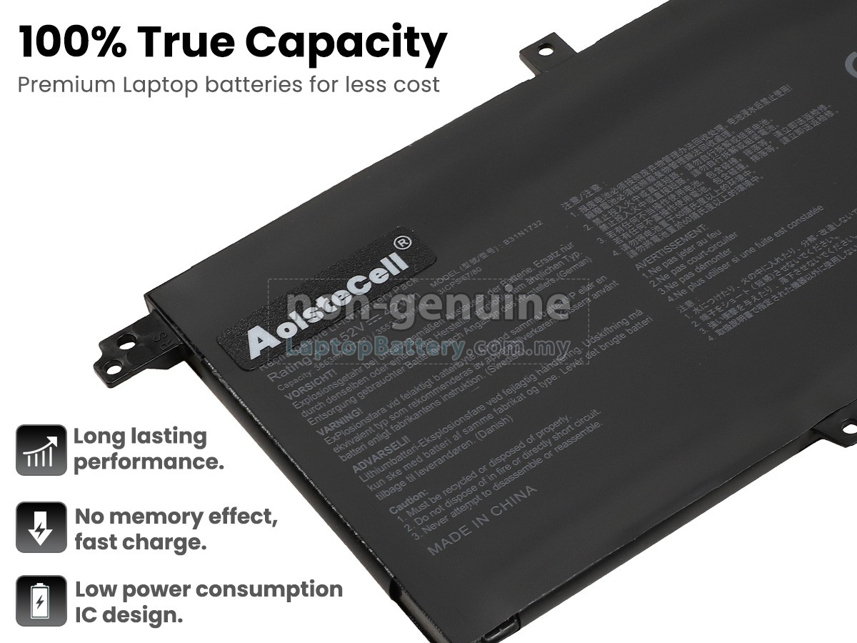 All our high-grade replacement batteries for Asus X571GT-AL855T laptop have been tested to prove that they can match or surpass original Asus battery performance and fit with Original Manufacturer's Specifications. In compliance with international standards, they obtain a series of rigorous safety certifications such as CE, UL, ROHS, ISO9001/9002. In general, this replacement Asus X571GT-AL855T battery can be charged/discharged up to more than 600 cycles.