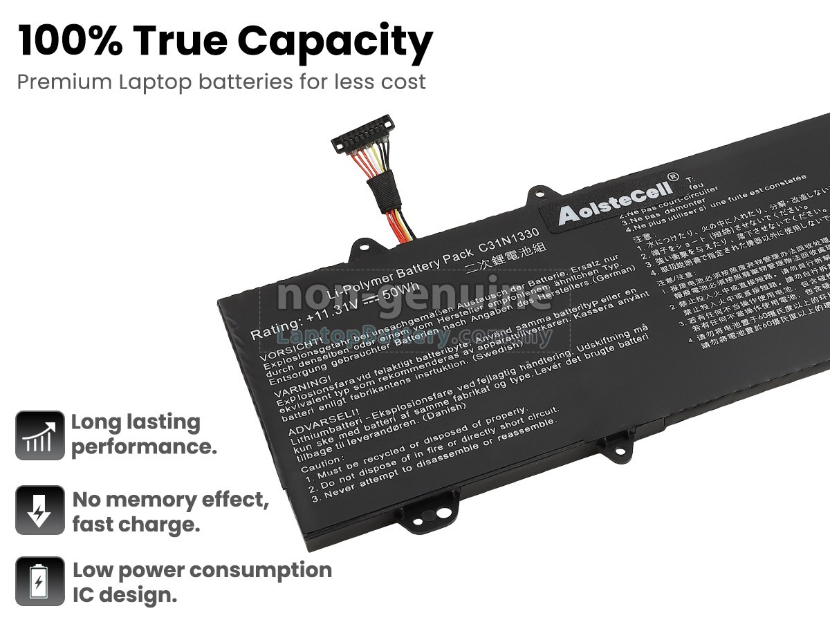 All our high quality replacement batteries for Asus ZenBook UX32LN laptop come with a 1-year warranty. Warranty is applicable if the buyer has installed the battery properly in the device and has treated the battery correctly.