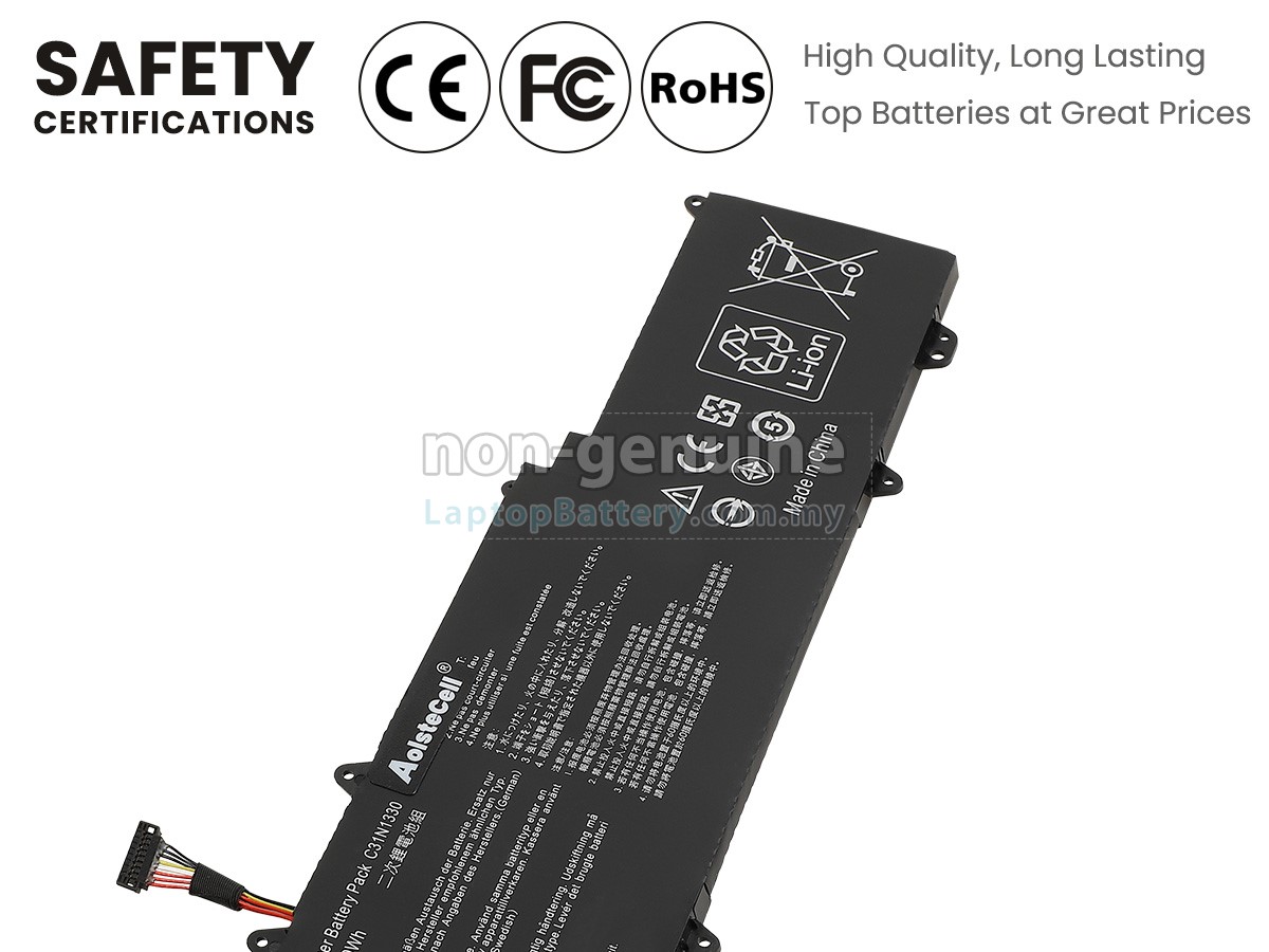 All our high-grade replacement batteries for Asus ZenBook UX32LN laptop have been tested to prove that they can match or surpass original Asus battery performance and fit with Original Manufacturer's Specifications. In compliance with international standards, they obtain a series of rigorous safety certifications such as CE, UL, ROHS, ISO9001/9002. In general, this replacement Asus ZenBook UX32LN battery can be charged/discharged up to more than 600 cycles.