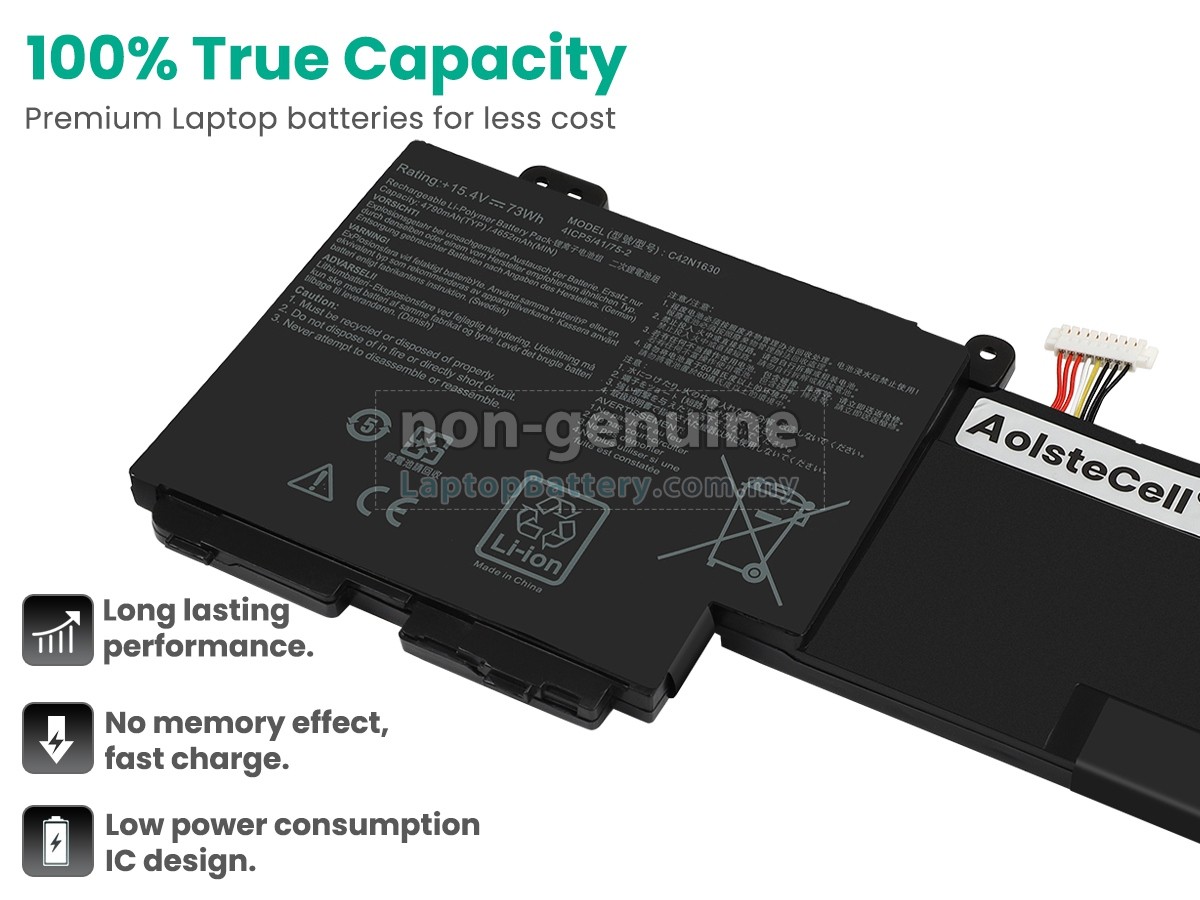 Our Website is your source of high-grade Asus laptop batteries! This brand new 73Wh(4 cells) replacement Asus ZenBook UX550VD Li-Polymer battery is made with high-grade cells from Samsung, LG and Panasonic to ensure maximum performance. The housing of the Asus ZenBook UX550VD battery pack is made of non flammable and very durable plastic, which is fire-retarded and nonperishable when dropped from low heights.