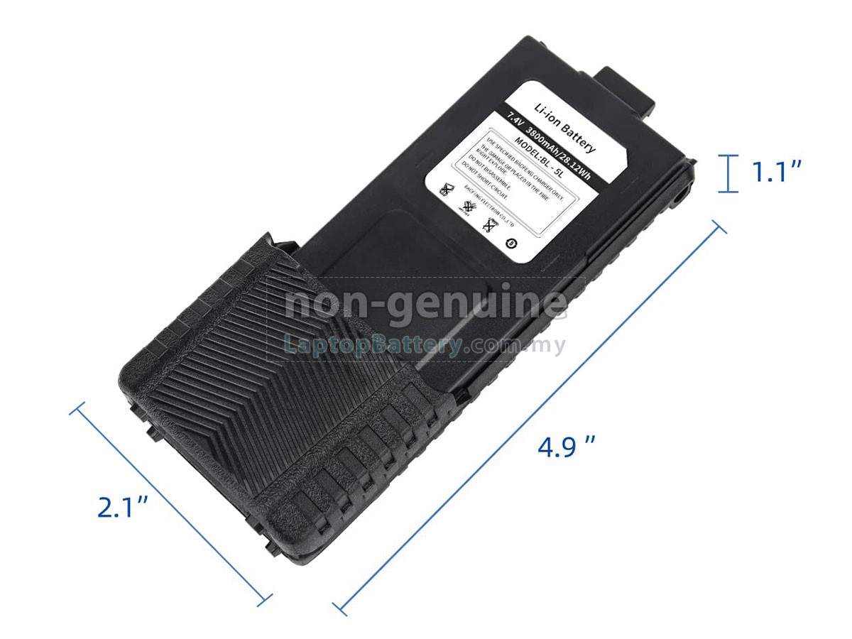 Our Website is your source of high-grade Baofeng batteries! This brand new 28.12Wh(1 cells) replacement Baofeng BF-F9 Li-ion battery is made with high-grade cells from Samsung, LG and Panasonic to ensure maximum performance. The housing of the Baofeng BF-F9 battery pack is made of non flammable and very durable plastic, which is fire-retarded and nonperishable when dropped from low heights.
