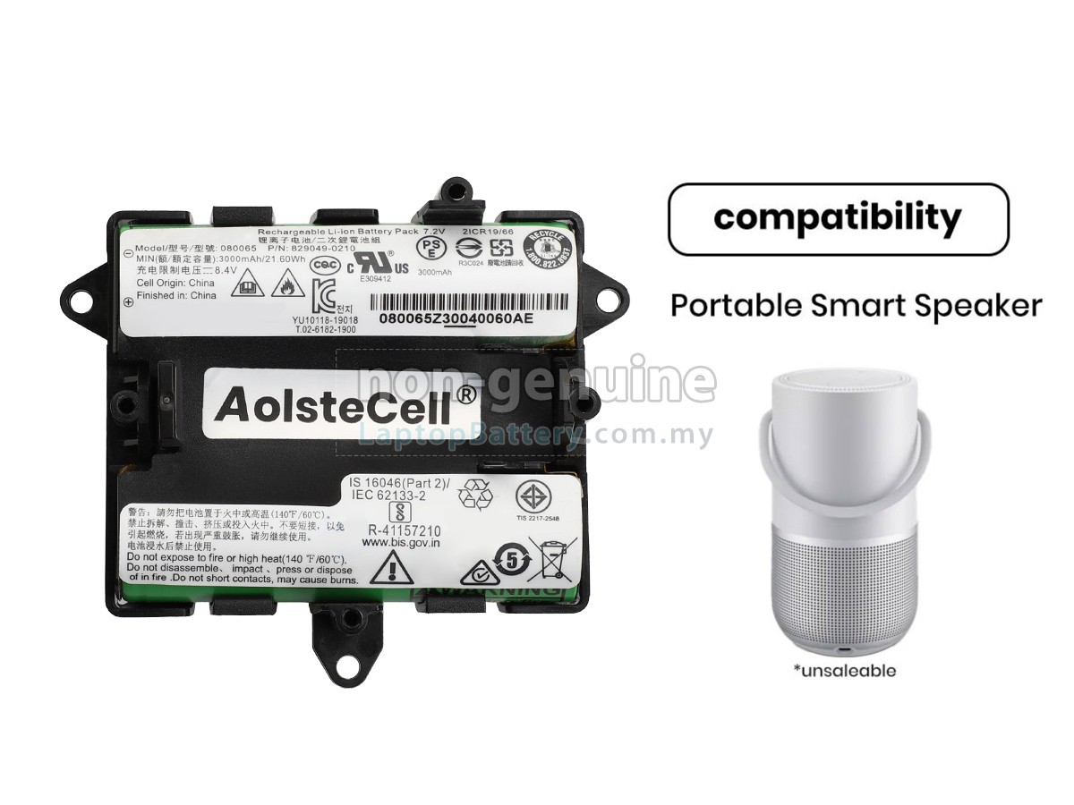 Our Website is your source of high-grade Bose speaker batteries! This brand new 3000mAh(2 cells) replacement Bose 080065 Li-ion battery is made with high-grade cells from Samsung, LG and Panasonic to ensure maximum performance. The housing of the Bose 080065 battery pack is made of non flammable and very durable plastic, which is fire-retarded and nonperishable when dropped from low heights.