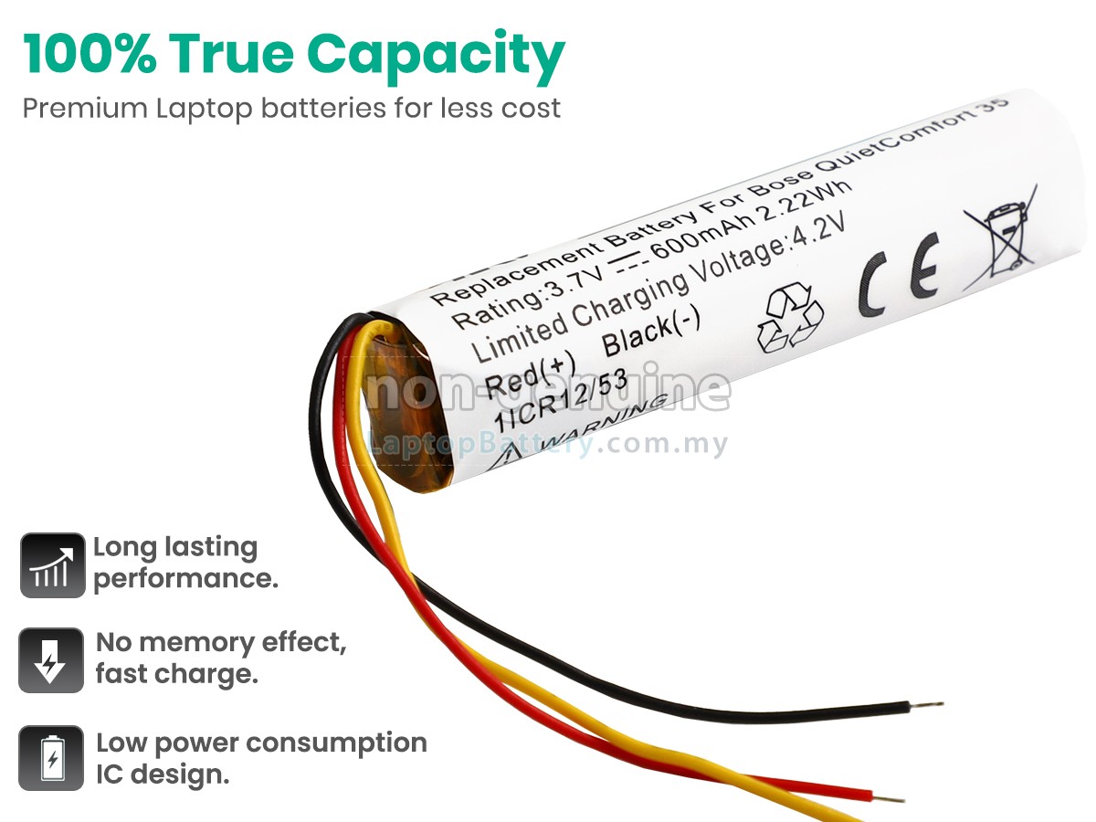 All our high-grade replacement batteries for Bose AHB110520CPS-02 have been tested to prove that they can match or surpass original Bose battery performance and fit with Original Manufacturer's Specifications. In compliance with international standards, they obtain a series of rigorous safety certifications such as CE, UL, ROHS, ISO9001/9002. In general, this replacement Bose AHB110520CPS-02 battery can be charged/discharged up to more than 600 cycles.