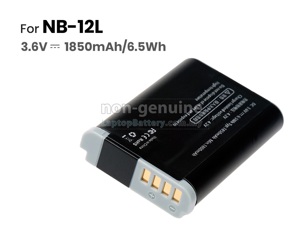 Our Website is your source of high-grade Canon batteries! This brand new 6.5Wh(1 cells) replacement Canon NB-12L Li-ion battery is made with high-grade cells from Samsung, LG and Panasonic to ensure maximum performance. The housing of the Canon NB-12L battery pack is made of non flammable and very durable plastic, which is fire-retarded and nonperishable when dropped from low heights.
