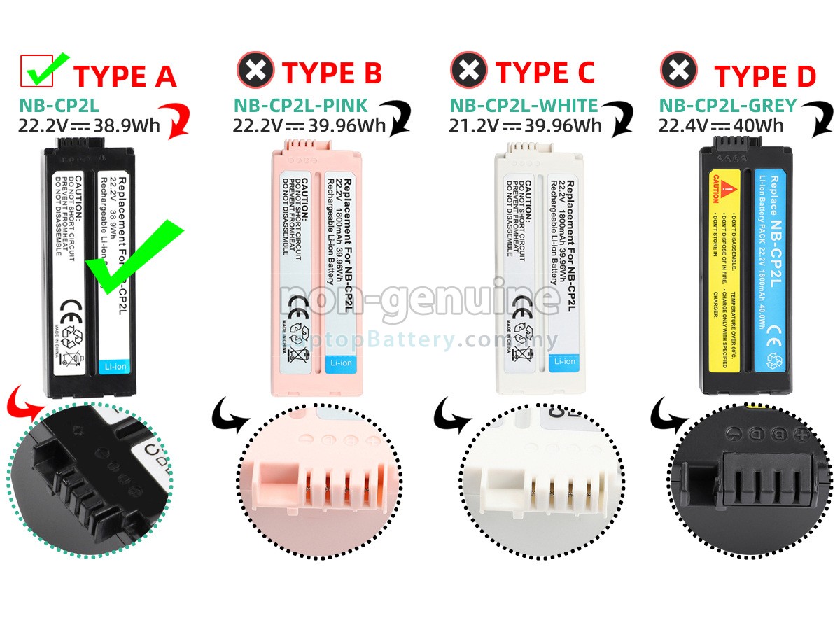 A:First, find out the part number of your old battery or the model name (e.g. 'Canon SELPHY CP800') and then match with our product compatibility table. Second, please compare your old battery with our product images to make sure their shapes are the same. Finally, check the voltage (rating) is the same as the old one.