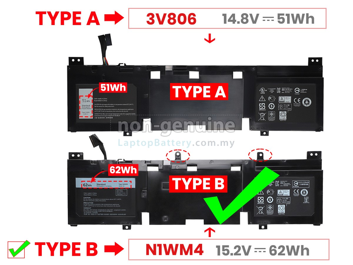 Our Website is your source of high-grade Dell laptop batteries! This brand new 51Wh(4 cells) replacement Dell N1WM4 Li-Polymer battery is made with high-grade cells from Samsung, LG and Panasonic to ensure maximum performance. The housing of the Dell N1WM4 battery pack is made of non flammable and very durable plastic, which is fire-retarded and nonperishable when dropped from low heights.