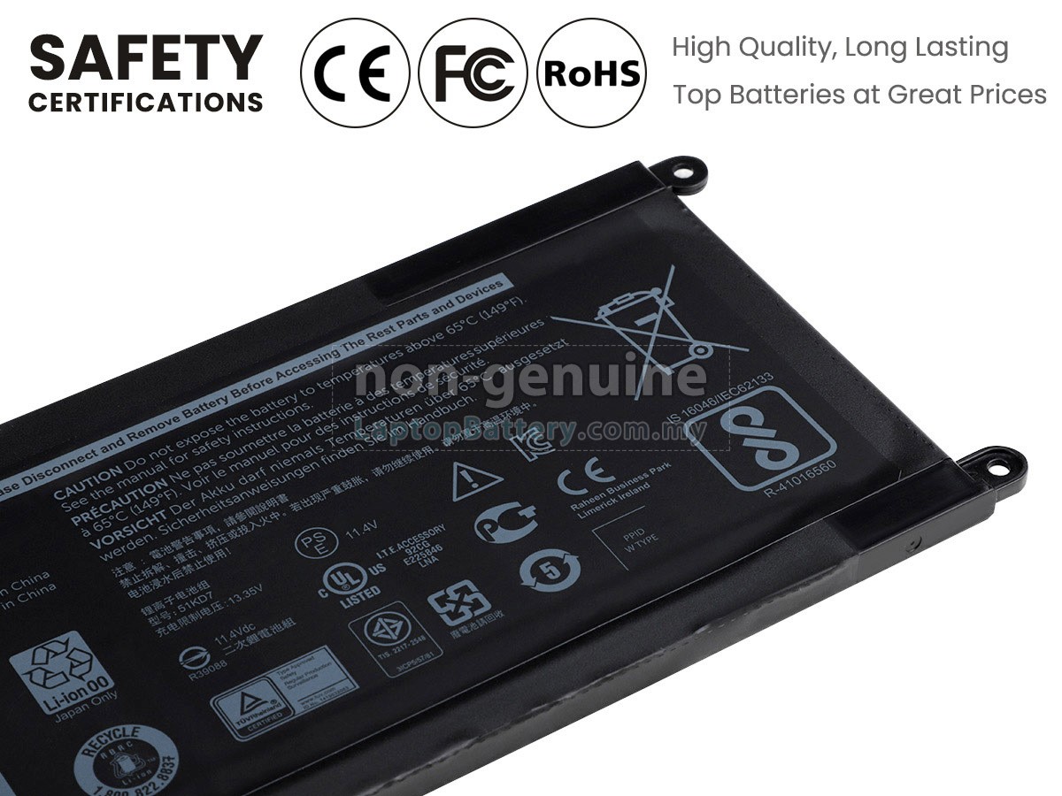 All our high-grade replacement batteries for Dell P30T001 laptop have been tested to prove that they can match or surpass original Dell battery performance and fit with Original Manufacturer's Specifications. In compliance with international standards, they obtain a series of rigorous safety certifications such as CE, UL, ROHS, ISO9001/9002. In general, this replacement Dell P30T001 battery can be charged/discharged up to more than 600 cycles.