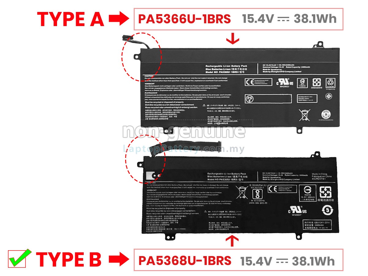 A:First, find out the part number of your old battery or the model name of your laptop (e.g. 'Dynabook PA5368U') and then match with our product compatibility table. Second, please compare your old battery with our product images to make sure their shapes are the same. Finally, check the voltage (rating) is the same as the old one. For more details please click How to find one correct battery for my laptop?