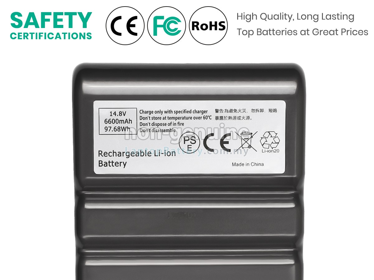 All our high-grade replacement vacuum cleaner batteries for Dyson 49686-03 have been tested to prove that they can match or surpass original Dyson battery performance and fit with Original Manufacturer's Specifications. In compliance with international standards, they obtain a series of rigorous safety certifications such as CE, UL, ROHS, ISO9001/9002. In general, this replacement Dyson 49686-03 battery can be charged/discharged up to more than 600 cycles.