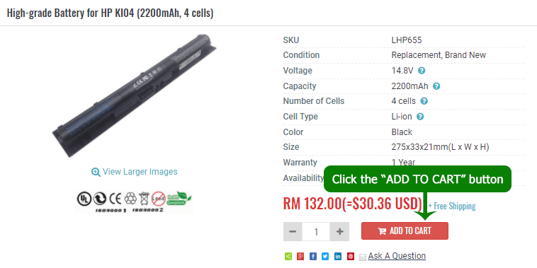 To place an order from laptopbattery.com.my is easy. We have provided here with a guideline to assist you on how to place an order with us.