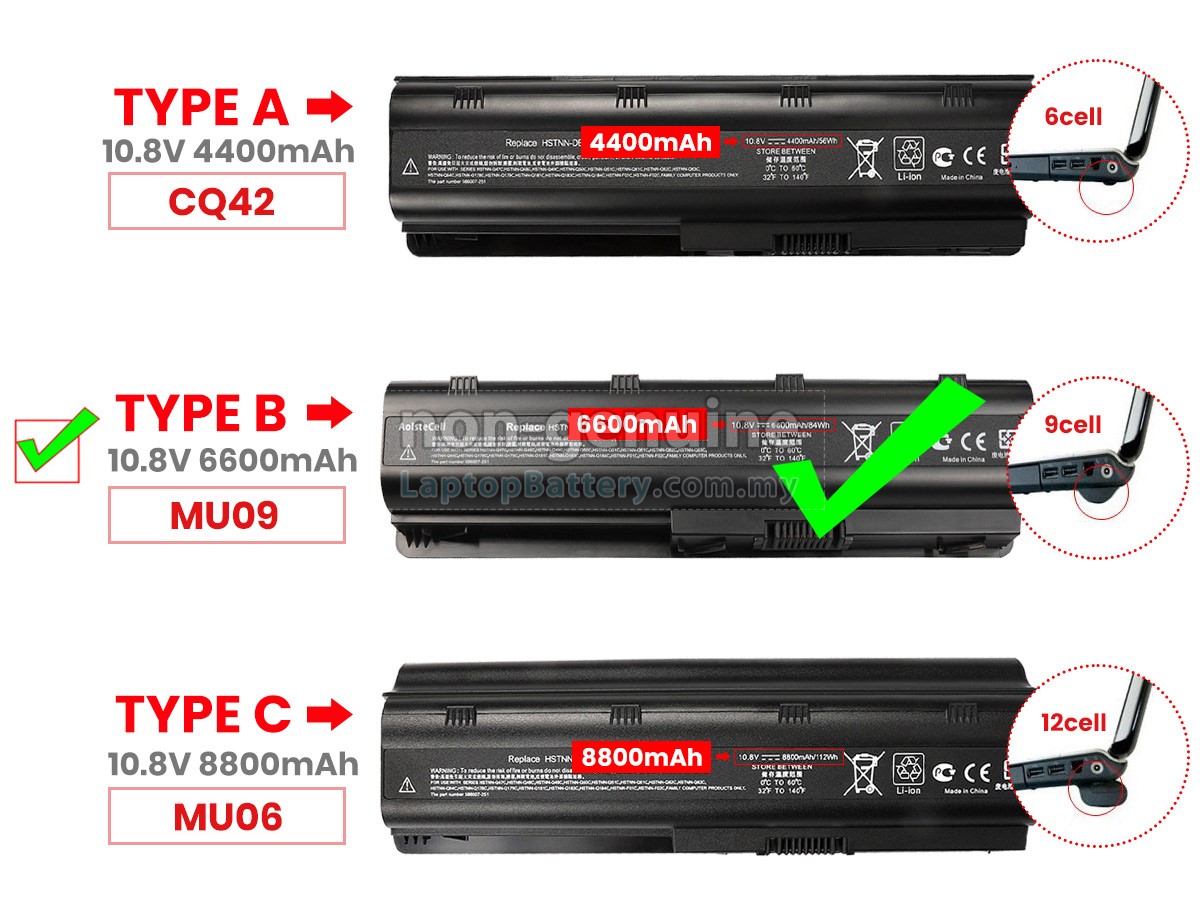 2. These replacement Envy 17-2100EO batteries are not compatible with HP Pavilion DV3-1000, DV3-2000 series and HP Pavilion DV6-1000, DV6-2000, DV6-7000, DV7-7000 Series laptops. 3. The 6600mAh(9 Cells) and 8800mAh(12 Cells) batteries will extend out about 1 inch from the bottom of the laptop, bigger size but help cooling and lasting longer.