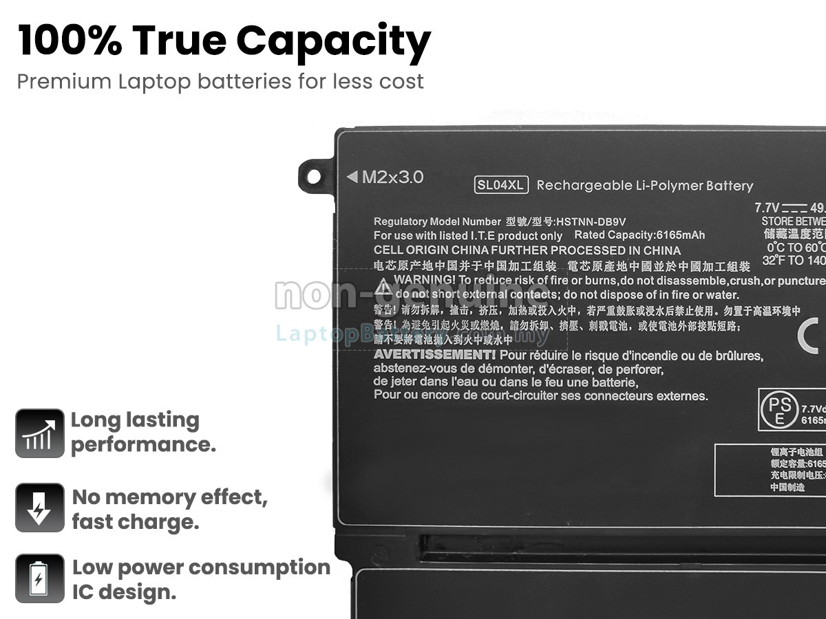 Our Website is your source of high-grade HP laptop batteries! This brand new 49.97Wh(4 cells) replacement HP HSTNN-DB9V Li-Polymer battery is made with high-grade cells from Samsung, LG and Panasonic to ensure maximum performance. The housing of the HP HSTNN-DB9V battery pack is made of non flammable and very durable plastic, which is fire-retarded and nonperishable when dropped from low heights.