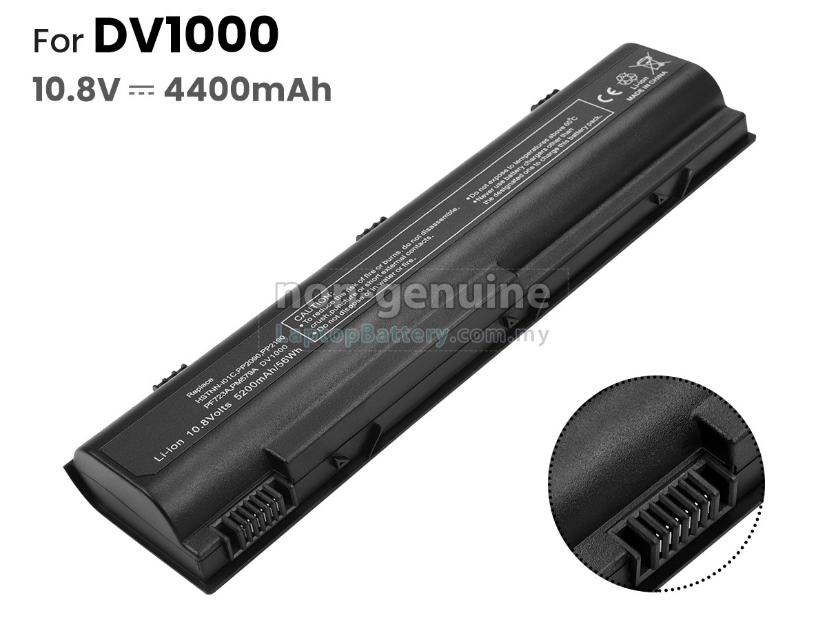 All our high quality replacement batteries for HP Pavilion DV1000 laptop come with a 1-year warranty. Warranty is applicable if the buyer has installed the battery properly in the device and has treated the battery correctly.