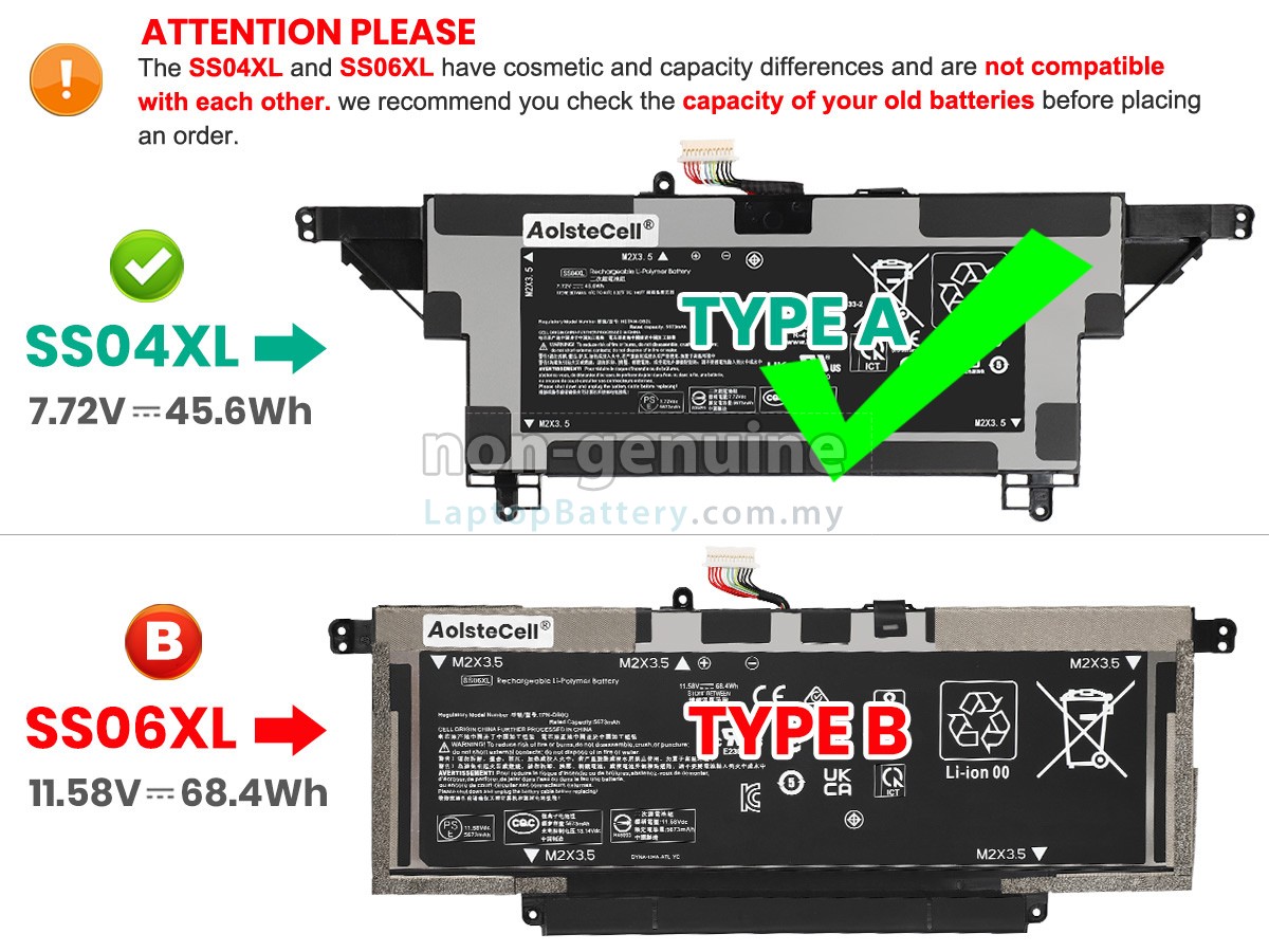 Our Website is your source of high-grade HP laptop batteries! This brand new 45.6Wh(4 cells) replacement HP SS04XL Li-Polymer battery is made with high-grade cells from Samsung, LG and Panasonic to ensure maximum performance. The housing of the HP SS04XL battery pack is made of non flammable and very durable plastic, which is fire-retarded and nonperishable when dropped from low heights.