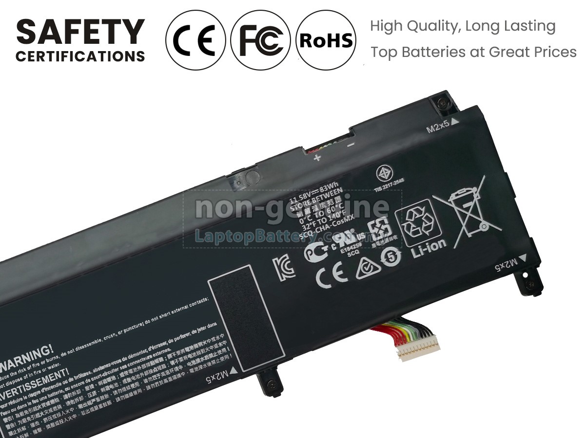 Our Website is your source of high-grade HP laptop batteries! This brand new 83Wh(6 cells) replacement HP ZBook STUDIO G7 Li-Polymer battery is made with high-grade cells from Samsung, LG and Panasonic to ensure maximum performance. The housing of the HP ZBook STUDIO G7 battery pack is made of non flammable and very durable plastic, which is fire-retarded and nonperishable when dropped from low heights.
