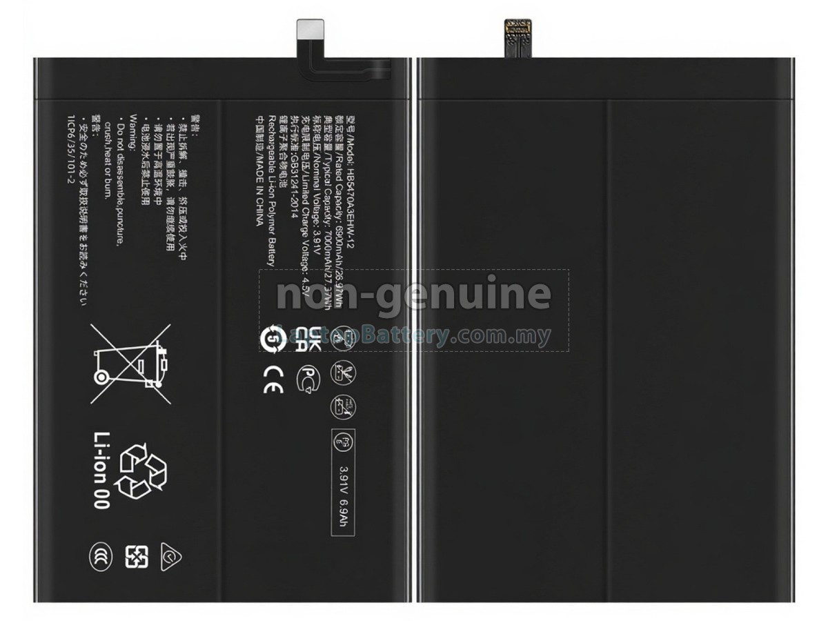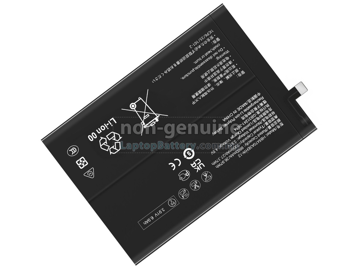 Our Website is your source of high-grade Huawei batteries! This brand new 7000mAh(1 cells) replacement Huawei NOVA Y91 Li-ion battery is made with high-grade cells from Samsung, LG and Panasonic to ensure maximum performance. The housing of the Huawei NOVA Y91 battery pack is made of non flammable and very durable plastic, which is fire-retarded and nonperishable when dropped from low heights.