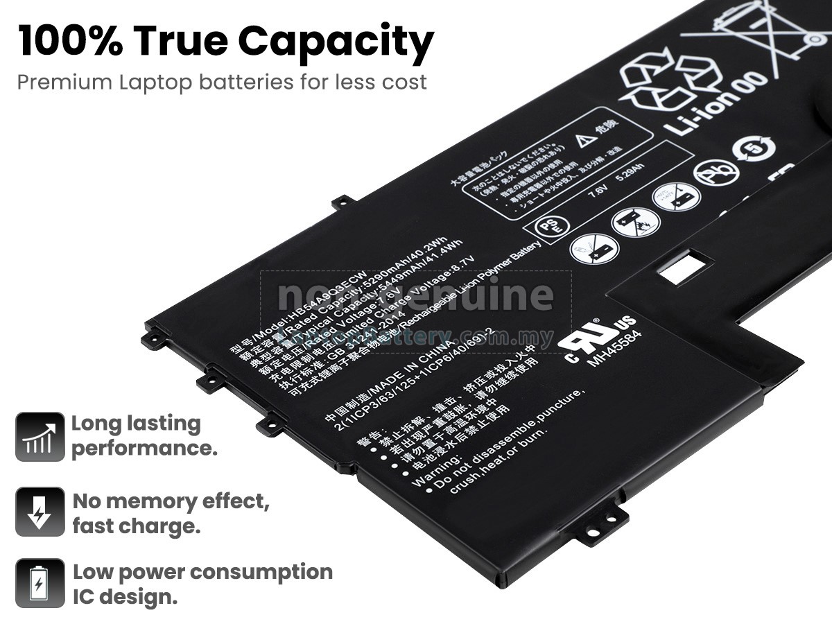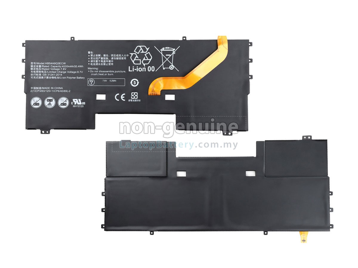 All our high-grade replacement batteries for Huawei WT-W09 laptop have been tested to prove that they can match or surpass original Huawei battery performance and fit with Original Manufacturer's Specifications. In compliance with international standards, they obtain a series of rigorous safety certifications such as CE, UL, ROHS, ISO9001/9002. In general, this replacement Huawei WT-W09 battery can be charged/discharged up to more than 600 cycles.