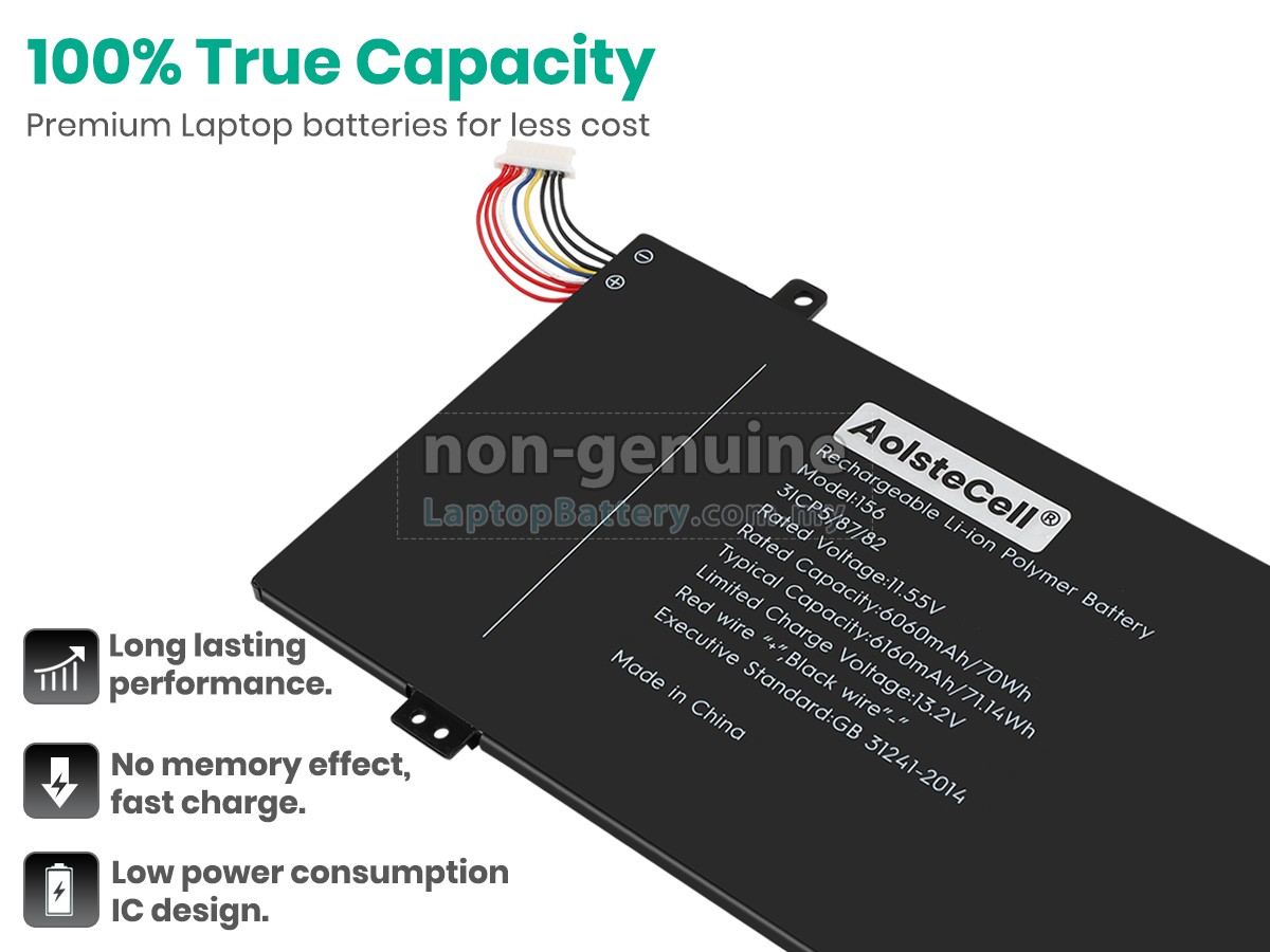 Our Website is your source of high-grade Infinix laptop batteries! This brand new 70Wh(3 cells) replacement Infinix 156 Li-Polymer battery is made with high-grade cells from Samsung, LG and Panasonic to ensure maximum performance. The housing of the Infinix 156 battery pack is made of non flammable and very durable plastic, which is fire-retarded and nonperishable when dropped from low heights.