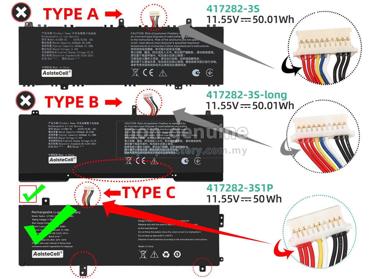Before placing an order, please open the computer to confirm that your battery model is 417282-3S1P and carefully check the battery screw hole location and wiring. - SKUMYL8755