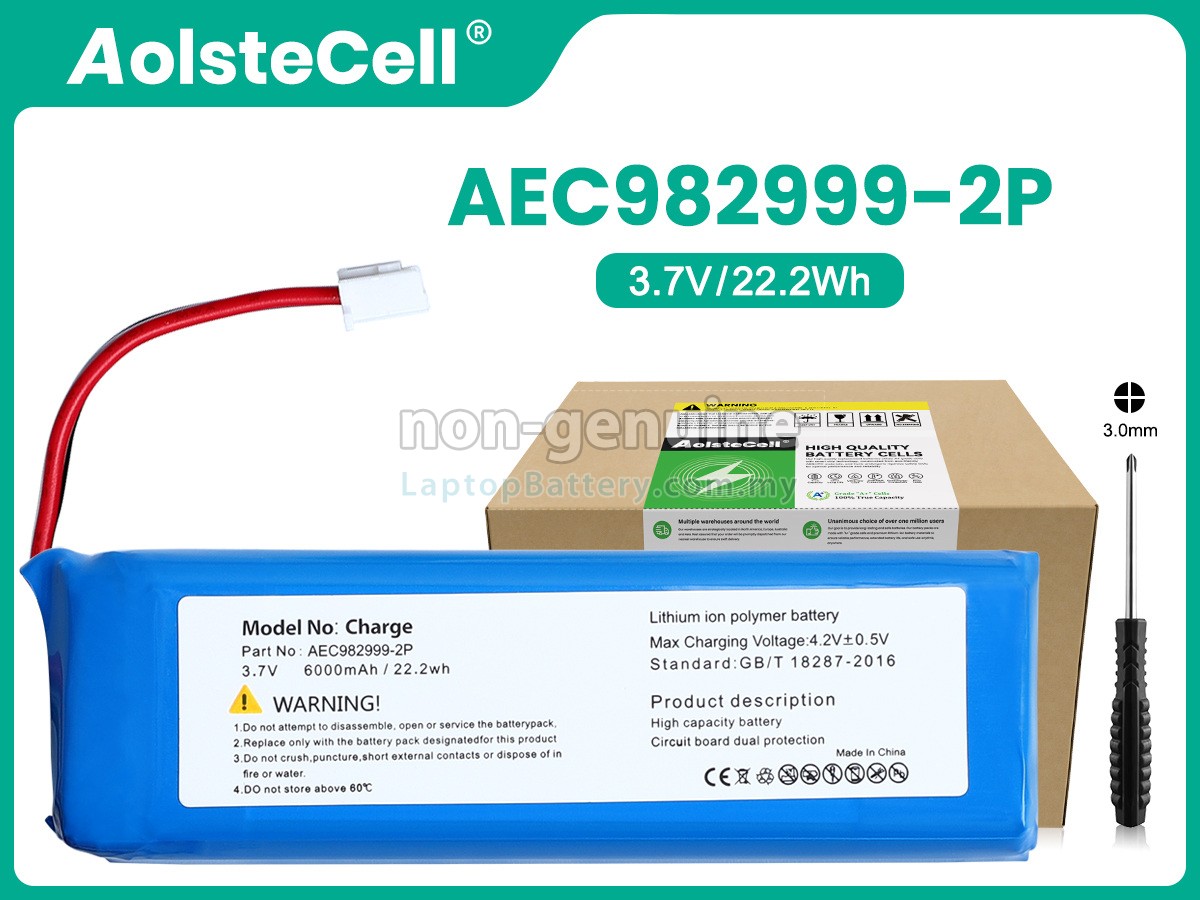 All our high quality replacement speaker batteries for JBL AEC982999-2P come with a 1-year warranty. Warranty is applicable if the buyer has installed the battery properly in the device and has treated the battery correctly.